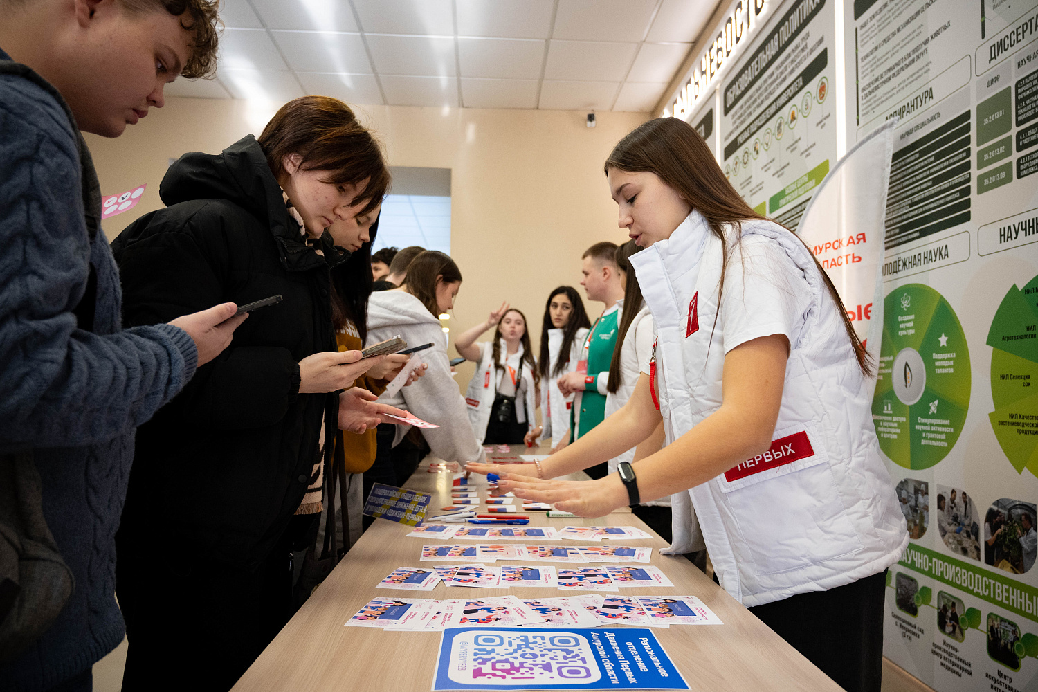 После открытия в холле главного корпуса продолжили работу интерактивные площадки от партнёров университета в сфере молодёжной политики. Они действовали до завершения мероприятия и стали точками притяжения для студентов, заинтересованных в новых проектах и форматах участия.
