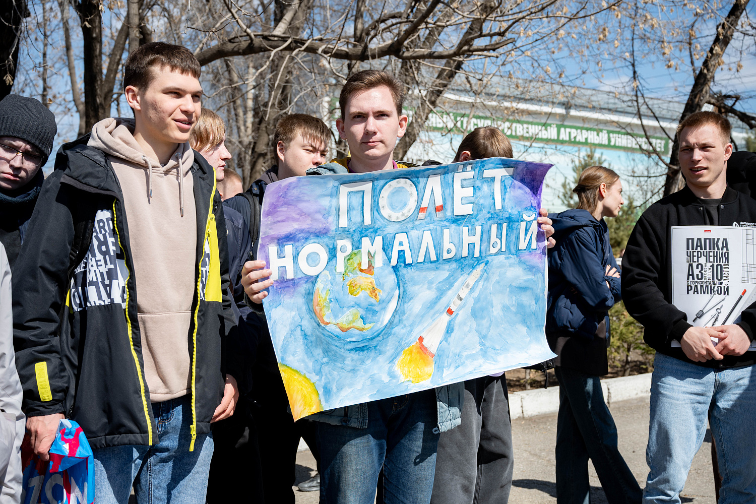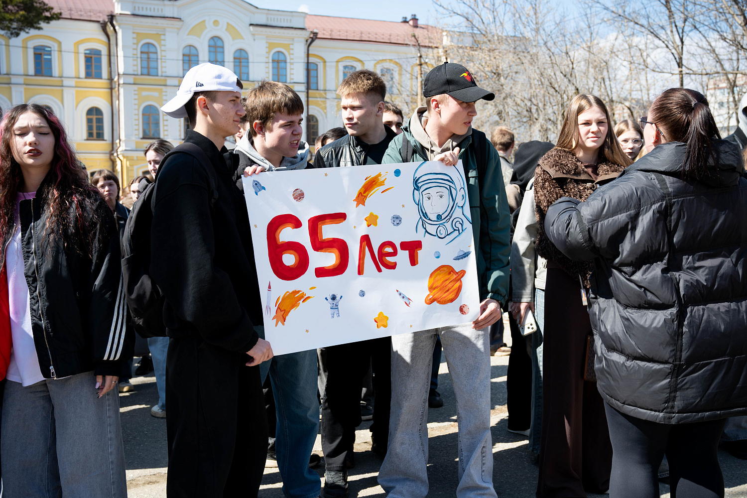 На площади перед главным корпусом университета торжественно открылась неделя мероприятий, посвященных 65-летию первого полета человека в космос. Масштабное событие под названием «65 лет – мы первые в космосе! » объединило студентов, преподавателей и сотрудников вуза.